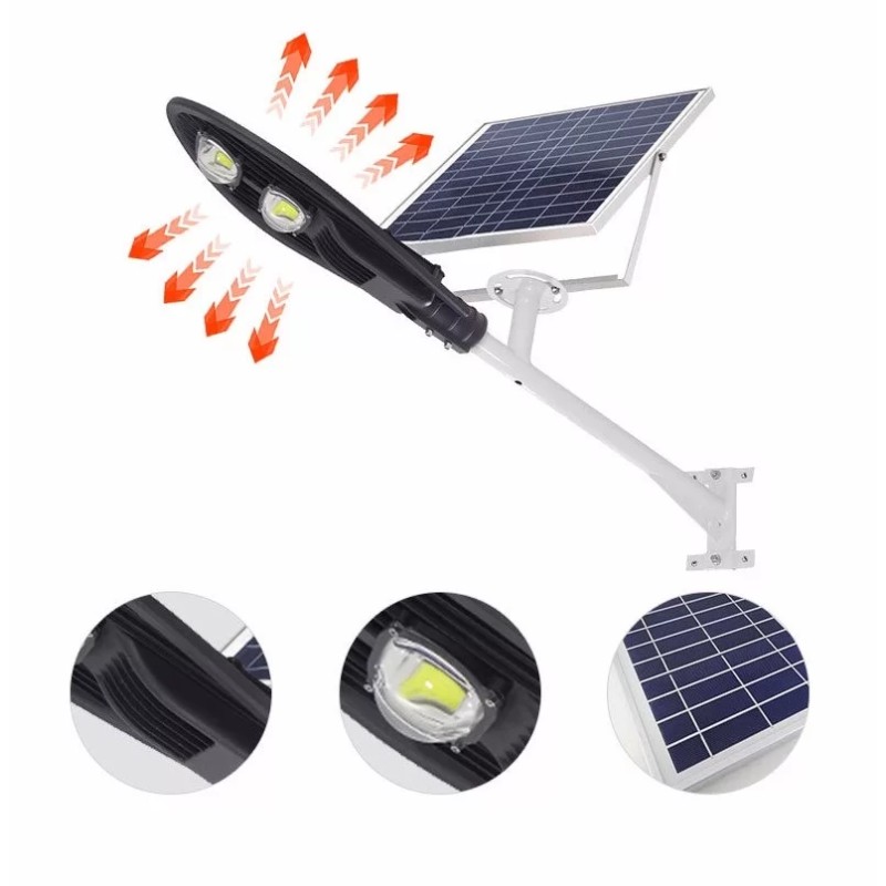 - Bộ sản phẩm gồm: Khung gắn giá đỡ + đèn + tấm pin + remote